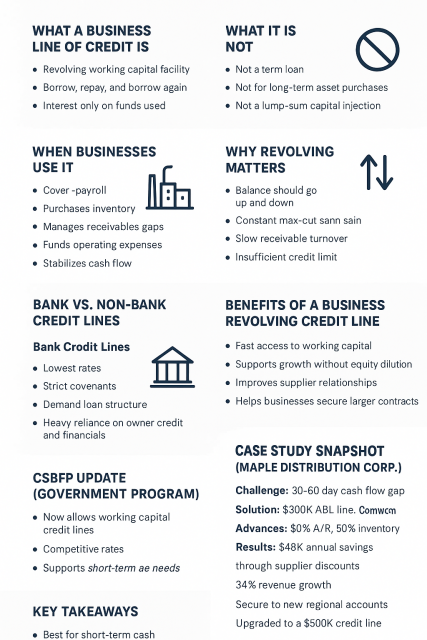 The Confidence Factor: The best time to secure a revolving line is when you don't desperately need it. Having unused credit capacity changes how you negotiate with suppliers, respond to opportunities, and sleep at night—yet most business owners wait until crisis mode to apply.